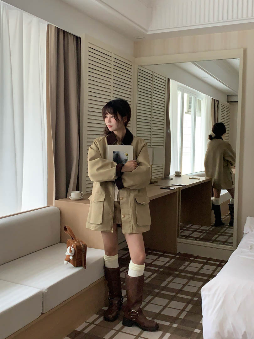 Coarse Spun Wool Bird's Nest Two-Way Windbreaker Jacket